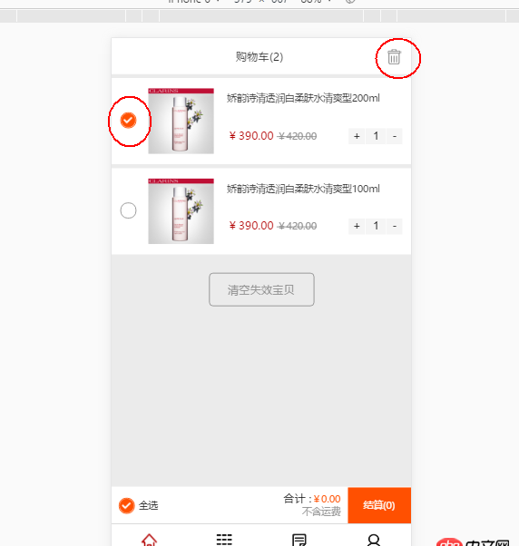 <p class='headerW'><p class='header'> 購物車(2) <span ng-click='remove($index)'></span> <br clear='all'/></p> </p> <p class='mainbody'><ul> <li ng- ng-hide='x.li_hide' ng-repeat='x in products_mes'><p class='li_center'> <p ng-click='toggleC($index)'></p> <p class='goods_part'><p class='rightbox'> <p class='goods_content'>{{x.content}}</p> <p class='price_area'><span class='new_money'>{{x.newMoney}}</span><span class='old_money'>{{x.oldMoney}}</span><span class='conter'> <span class='remove_btn'>-</span><input type='number' class='' value='1'/><span class='add_btn'>+</span> <br clear='all'/></span> </p></p> </p> <br clear='all'/></p> </li><li ng-hide='sw'><p class='li_center'> <p class='select_btn'></p> <p class='lose'>失效</p> <p class='goods_part'><p class='rightbox'> <p class='goods_content'>嬌韻詩清透潤白柔膚水清爽型200ml</p> <p class='price_area'><span class='new_money'>¥390.00</span><span class='old_money'>¥420.00</span><span class='conter'> <span class='remove_btn'>-</span><input type='number' class='' value='1'/><span class='add_btn'>+</span> <br clear='all'/></span> </p></p> </p> <br clear='all'/></p></li><script>var app=angular.module('myApp',[]);app.controller('myCon',function($scope){ $scope.sw=false;$scope.disappear=function(){ $scope.sw=true;};$scope.products_mes=[{onSw:false,content:'嬌韻詩清透潤白柔膚水清爽型200ml',newMoney:'¥390.00',oldMoney:'¥420.00',products_img:'img/product.png' },{onSw:false,content:'嬌韻詩清透潤白柔膚水清爽型100ml',newMoney:'¥390.00',oldMoney:'¥420.00',products_img:'img/product.png' }];$scope.products_mes.onSw=false;$scope.toggleC=function($index){$scope.products_mes[$index].onSw=!$scope.products_mes[$index].onSw;var index = $scope.products_mes.indexOf($index);if($scope.products_mes[$index].onSw){} }; $scope.delProds =[]; });