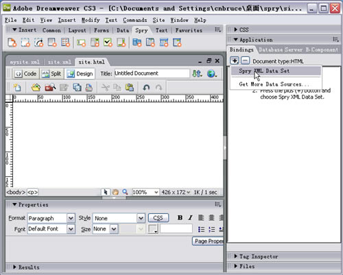 2,在Dreamweaver CS3中添加“Spry XML Date Set”