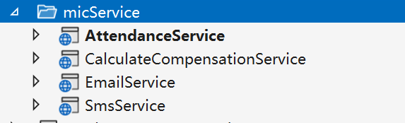 1.首先我們需要使用NET Core web Api創(chuàng)建幾個模擬的微服務(wù),分別為 考勤、算薪、郵件、短信