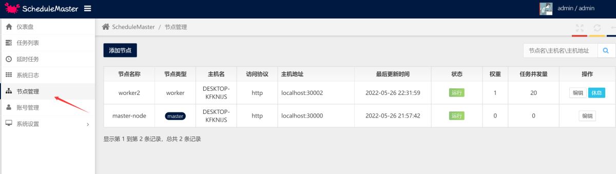 5.準(zhǔn)備就緒后,使用后臺查看節(jié)點管理,可以看到web主節(jié)點30000和任務(wù)調(diào)度的接口30002已經(jīng)在運行