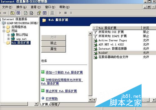 web服務(wù)擴展,除了第一二項,其他都允許。