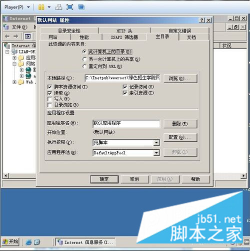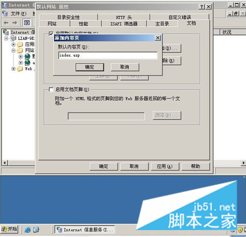 點擊文檔。把啟用默認內(nèi)容文檔的都刪除,從新添加index.asp。之后其他就確定。完成。