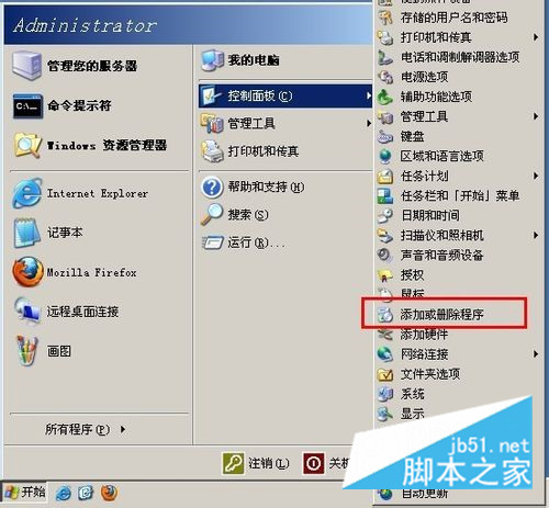 了解過后我們就來安裝IIS吧,首先打開控制面板(小編使用的操作系統是windows2003,很多網站都使用它作為默認的服務器,因此小編以此為例),找到添加或刪除程序選項(如下圖紅線標注處所示),然后點擊進入。