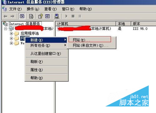 完成安裝后我們就可以配置IIS服務器了,雙擊IIS服務器,找到網站選項,然后右擊,選擇新建選項,最后點擊網站,便可以新建一個網站了。建立網站的時候選擇的網站根目錄選擇我們需要打開的ASP文件所在目錄,主機頭要設置為localhost,方便我們本地測試。