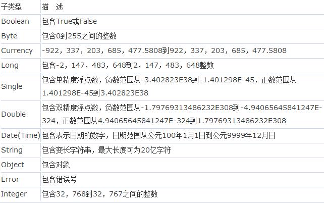Variant包含的值信息類型稱為子類型。大多數(shù)情況下,可將所需的數(shù)據(jù)放進(jìn)Variant中,而Variant也會(huì)按照最適用于其數(shù)據(jù)的方式進(jìn)行操作。