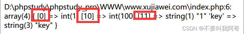 <?php$arr3[]=1;$arr3[10]=100;$arr3[]="1";$arr3["key"]="key";var_dump($arr3);?>