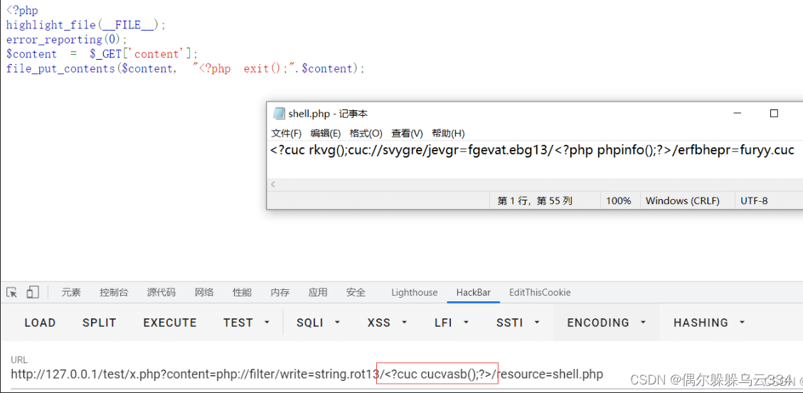 這樣的話上面的題目,用rot13繞過前面的 exit就會轉成別的東西,而我們輸入的則最后還是那串執行代碼,這樣也就可以繞過了