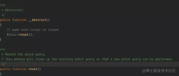 搭建完后我們首先找到漏洞切入點,也就是可能存在威脅的地方,結合上面對魔術方法的分析在 /vendor/yiisoft/yii2/db/BatchQueryResult.php下找到了可能存在漏洞的點,因為里面有個魔術方法在對象銷毀時調用: