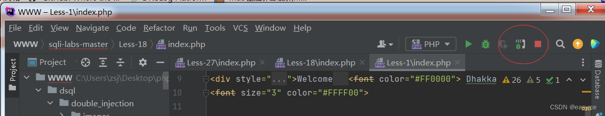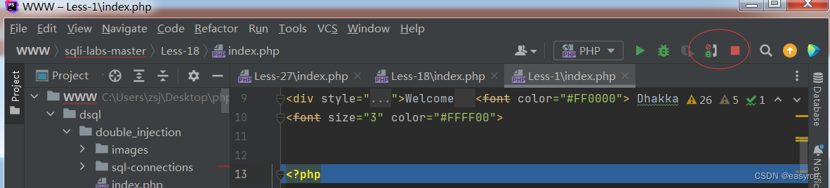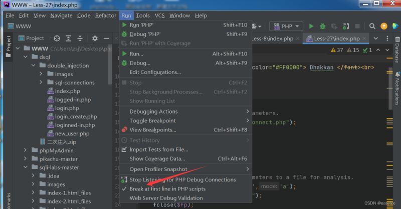 Run勾選上Break at first line in PHP scripts