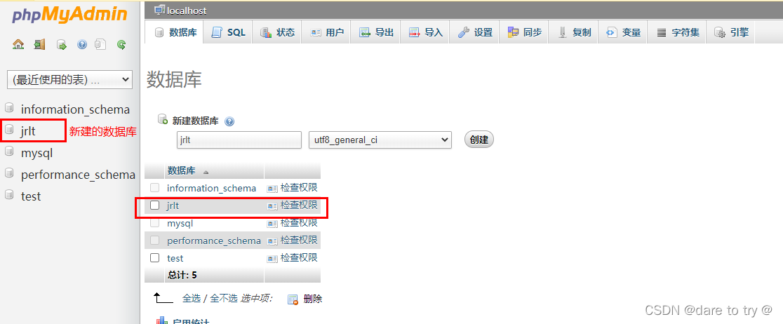 (1)先在數據庫中創建一個jrlt的數據庫。