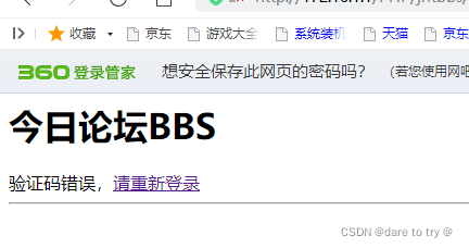 (7)點擊登錄,輸入賬號a,密碼1,并輸入驗證碼(驗證碼輸入不一致),嘗試下會出現什么結果,點擊登錄,出現以下提示。