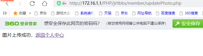 <meta charset="utf-8"><?phpif(setcookie("name",$_COOKIE["name"],time()-3600,"/PHP/jrltbbs")){ //注意cookie的路徑,不同路徑的cookie認為是兩條cookie echo "注銷成功,<a href="../index.php">返回首頁</a>";}else{ die("error");}?>3.9 更新頭像./member/updatePhoto.php