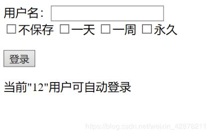 %@ page language="java" import="java.util.*" pageEncoding="UTF-8"%><%String path = request.getContextPath();String basePath = request.getScheme()+"://"+request.getServerName()+":"+request.getServerPort()+path+"/";%><!DOCTYPE HTML PUBLIC "-//W3C//DTD HTML 4.01 Transitional//EN"><html> <head> <base href="<%=basePath%>" rel="external nofollow" rel="external nofollow" > <title>My JSP "show.jsp" starting page</title> <meta http-equiv="pragma" content="no-cache"> <meta http-equiv="cache-control" content="no-cache"> <meta http-equiv="expires" content="0"> <meta http-equiv="keywords" content="keyword1,keyword2,keyword3"> <meta http-equiv="description" content="This is my page"> <!-- <link rel="stylesheet" type="text/css" href="styles.css" rel="external nofollow" rel="external nofollow" > --> </head> <body> <% //獲取username String name = request.getParameter("username"); //判斷用戶名是否存在 if(name != null && !name.trim().equals("")){ String[] time = request.getParameterValues("time"); //設(shè)置session值,便于login頁(yè)面讀取 session.setAttribute("name", name); //設(shè)置Cookie Cookie Cookie = new Cookie("name",name); //根據(jù)提交選項(xiàng)設(shè)置cookie保存時(shí)間 if(time != null){ for(int i=0;i<time.length;i++){ //不保存Cookie if(time[i].equals("notSave")){ Cookie.setMaxAge(0); } //保存一天Cookie if(time[i].equals("aDay")){ Cookie.setMaxAge(60*60*24); } //保存一周Cookie if(time[i].equals("aWeek")){ Cookie.setMaxAge(60*60*24*7); } //永久保存Cookie,設(shè)置為100年 if(time[i].equals("forever")){ Cookie.setMaxAge(60*60*24*365*100); } } } //在客戶端保存Cookie response.addCookie(Cookie); } else{%> <%--用戶名不存在則進(jìn)行判斷是否已有cookie --%> <% //獲取cookie Cookie[] cookies = request.getCookies(); //cookie存在 if(cookies != null && cookies.length > 0){ for(Cookie cookie:cookies){ //獲取cookie的名字 String cookieName = cookie.getName(); //判斷是否與name相等 if(cookieName.equals("name")){ //獲取cookie的值 String value = cookie.getValue(); name = value; } } } } if(name != null && !name.trim().equals("")){ out.print("您好: " + name+"歡迎登錄"); } else{//否則重定向到登錄界面 out.print("您還沒有注冊(cè),2秒后轉(zhuǎn)到注冊(cè)界面!"); response.setHeader("refresh","2;url=login.jsp"); %> 如果沒有自動(dòng)跳轉(zhuǎn),請(qǐng)點(diǎn)擊<a href="login.jsp" rel="external nofollow" >此處</a>進(jìn)行跳轉(zhuǎn) <% //response.sendRedirect("login.jsp"); }%> </body></html>實(shí)現(xiàn)效果: