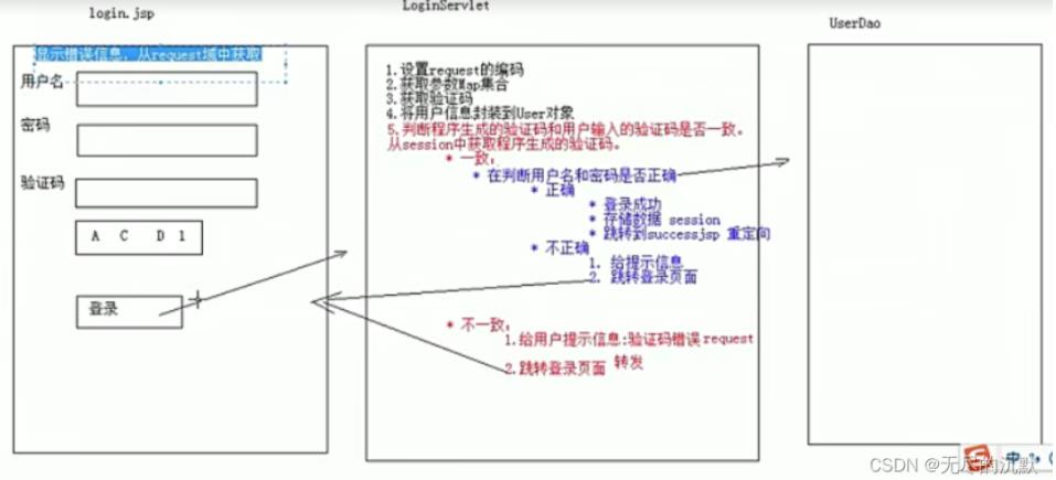 package web.servlet;?import java.io.IOException;import java.util.Random;import java.awt.Color;import java.awt.Font;import java.awt.Graphics;import java.awt.image.BufferedImage;?import javax.imageio.ImageIO;import javax.servlet.ServletException;import javax.servlet.annotation.WebServlet;import javax.servlet.http.HttpServlet;import javax.servlet.http.HttpServletRequest;import javax.servlet.http.HttpServletResponse;?@WebServlet("/checkcode")public class CheckCode extends HttpServlet{??? ?/**?? ? *??? ? */?? ?private static final long serialVersionUID = 1L;??? ?@Override?? ?protected void doGet(HttpServletRequest req, HttpServletResponse resp) throws ServletException, IOException {?? ??? ?// TODO Auto-generated method stub?? ??? ?this.doPost(req, resp);?? ?}??? ?@Override?? ?protected void doPost(HttpServletRequest req, HttpServletResponse resp) throws ServletException, IOException {?? ??? ?int imgwidth=100;?? ??? ?int imgheight=40;?? ??? ?//1.創(chuàng)建圖片對象,在內(nèi)存中圖片(驗證碼圖片對象)?? ??? ?BufferedImage image=new BufferedImage(imgwidth,imgheight,BufferedImage.TYPE_INT_RGB); ?//也可以指定讀取image=imageIO.read(new file())?? ??? ?//2.美化圖片?? ??? ?Graphics g=image.getGraphics(); //獲得畫筆對象?? ??? ??? ??? ?//設(shè)置畫筆顏色?? ??? ?g.setColor(Color.pink);?? ??? ?//在創(chuàng)建的圖片對象大小中填充矩形,顏色為上面設(shè)置的顏色,第一,二個參數(shù)是起始點的x,y,第三,四個參數(shù)是有多寬,有多高?? ??? ?g.fillRect(0, 0, imgwidth, imgheight);?? ??? ??? ??? ?//重新設(shè)置畫筆顏色?? ??? ?g.setColor(Color.yellow);//畫框邊緣顏色?? ??? ?//在image上畫邊框,第一,二個參數(shù)是起始點的x,y,第三,四個參數(shù)是有多寬,有多高,注意:邊框占一個像素,所以需要寬和高-1才能覆蓋全部?? ??? ?g.drawRect(0, 0, imgwidth-1, imgheight-1);?? ??? ??? ??? ?//隨機(jī)設(shè)置驗證碼的值?? ??? ?String str="abcdefghijklmnopqrstuvwxyzABCDEFGHIJKLMNOPQRSTUVWXYZ1234567890";?? ??? ?Random random=new Random();?? ??? ?StringBuilder sb=new StringBuilder();?? ??? ?//隨機(jī)在image中寫字符串,第三,四個參數(shù)是畫的位置?? ??? ?for(int i=1;i<5;i++) {?? ??? ??? ?int index=random.nextInt(str.length()); ?//隨機(jī)選取字母字符?? ??? ??? ?g.setFont(new Font("宋體", Font.PLAIN, 20)); ?//設(shè)置畫筆大小?? ??? ??? ?sb.append(str.charAt(index));//將隨機(jī)驗證碼置于stringbuilder中?? ??? ??? ?g.setColor(Color.blue); ?//畫筆顏色?? ??? ? ? ?g.drawString(str.charAt(index)+"",imgwidth/5*i ,25); ? ??? ??? ?}?? ??? ??? ??? ?//將驗證碼存儲與session對象中,用于loginservlet中的驗證碼驗證?? ??? ?String session_code=sb.toString();?? ??? ?req.getSession().setAttribute("session_code", session_code);?? ??? ??? ??? ?//隨機(jī)畫干擾線,第一,二個參數(shù)是起始點的x,y,第三,四個參數(shù)是最后一個點的x,y?? ??? ?int x1=0,y1=0,x2=0,y2=0;?? ??? ?for(int i=0;i<=8;i++) { ?//畫8次線條?? ??? ??? ?x1=random.nextInt(imgwidth);?? ??? ??? ?y1=random.nextInt(imgheight);?? ??? ??? ?x2=random.nextInt(imgwidth);?? ??? ? ? ?y2=random.nextInt(imgheight);?? ??? ? ? ?g.setColor(Color.gray);?? ??? ? ? ?g.drawLine(x1, y1, x2, y2);?? ??? ?}?? ??? ??? ??? ?//3.圖片顯示在頁面上?? ??? ?ImageIO.write(image, "jpg", resp.getOutputStream()); ?//將圖片寫入指定文件(第三個參數(shù)是指定的位置Fileoutpotstream(new File(""))?? ?}?? ??}7.創(chuàng)建web層的checklogin的servlet,用來響應(yīng)用戶登錄的請求。主要是進(jìn)行前端參數(shù)數(shù)據(jù)和UserDao進(jìn)行交互