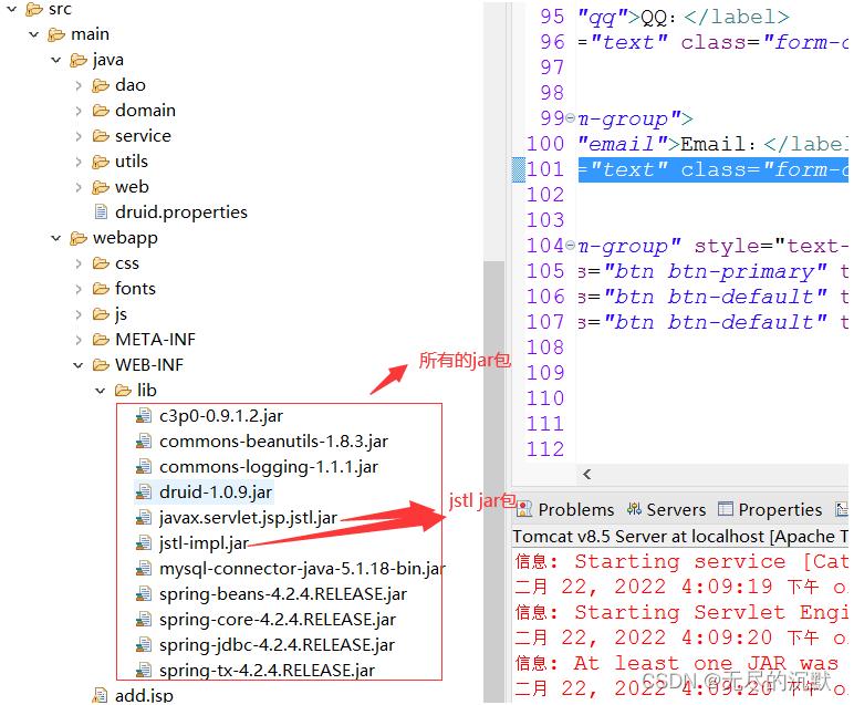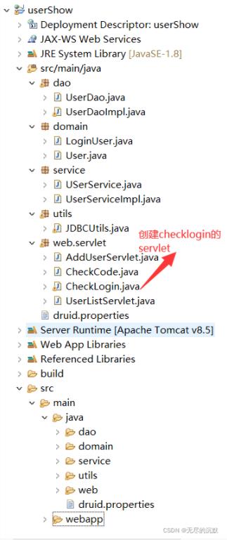 package domain;?public class LoginUser {?? ?private int id;?? ?private String userName;?? ?private String password;?? ?public int getId() {?? ??? ?return id;?? ?}?? ?public void setId(int id) {?? ??? ?this.id = id;?? ?}?? ?public String ?getUserName() {?? ??? ?return userName;?? ?}?? ?public void setUserName(String userName) {?? ??? ?this.userName = userName;?? ?}?? ?public String getPassword() {?? ??? ?return password;?? ?}?? ?public void setPassword(String password) {?? ??? ?this.password = password;?? ?}?? ?@Override?? ?public String toString() {?? ??? ?return "LoginUser [id=" + id + ", userName=" + userName + ", password=" + password + "]";?? ?}}5.寫utils包下的工具類JDBCUtils ,主要是與mysql數(shù)據(jù)庫連接,創(chuàng)建數(shù)據(jù)庫連接池對象