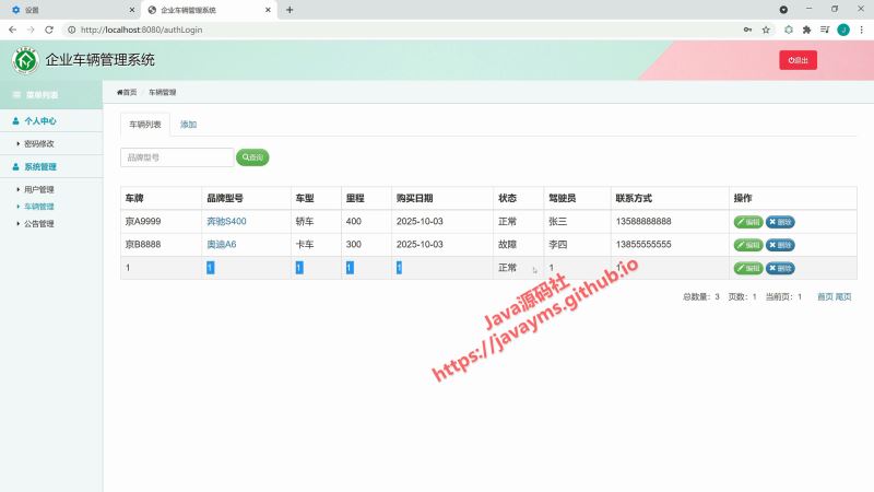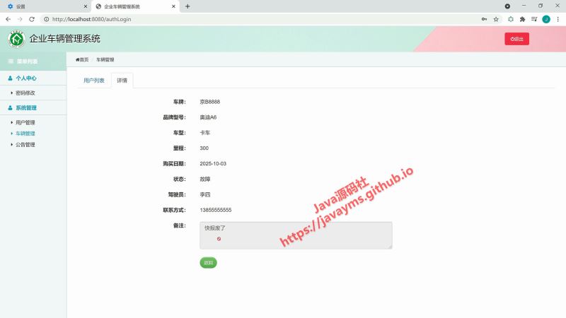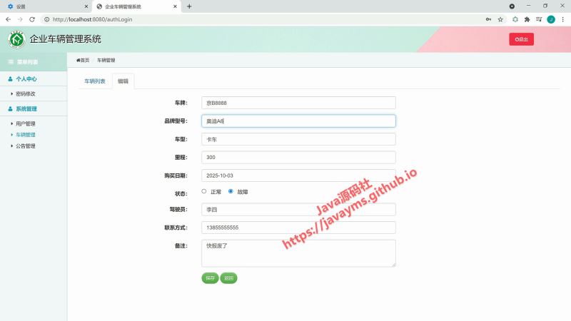 以上就是基于javaweb+jsp實現企業車輛管理系統的詳細內容,更多關于javaweb jsp 的資料請關注其它相關文章!