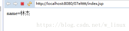 可以看出,使用applicationScope即可指定application域中的name輸出,當(dāng)然其他域也是類似,下文會說這四大域?qū)傩韵嚓P(guān)的內(nèi)置對象