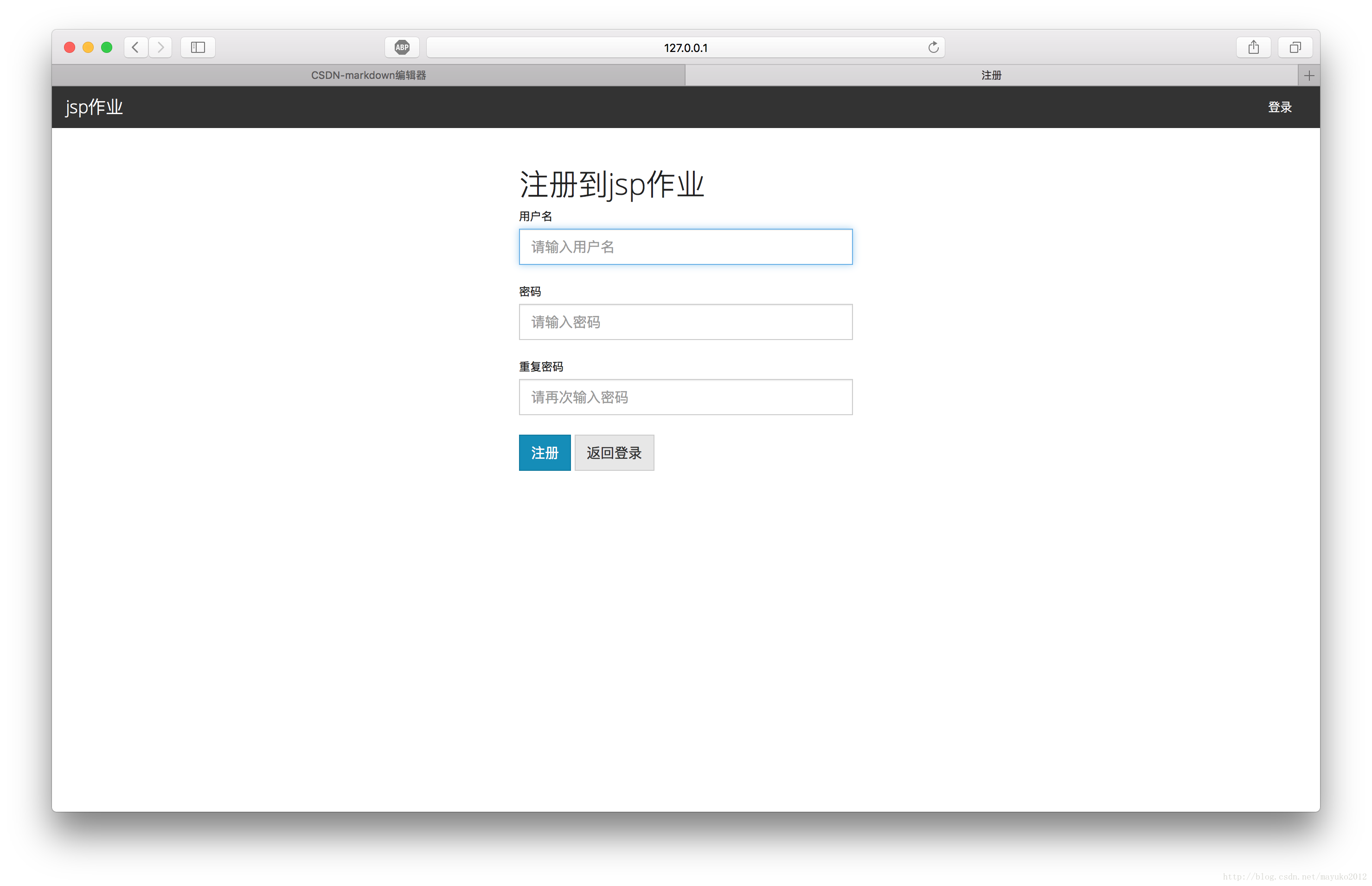 完成登錄JSP頁面設計和注冊頁面設計