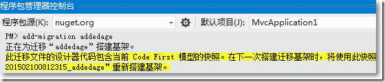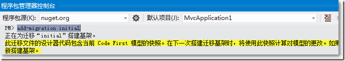 還是在"程序包管理器控制臺",輸入add-migration 名稱: