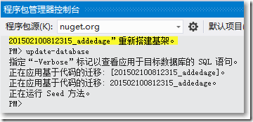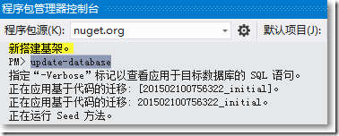 最后,還在"程序包管理器控制臺",輸入update-database以更新數(shù)據(jù)庫。