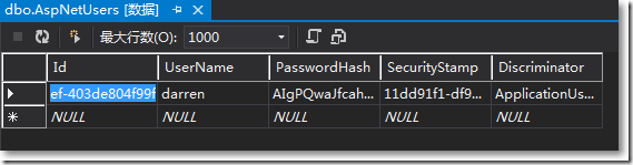 比如用戶數據被存放在表"AspNetUsers"中。
