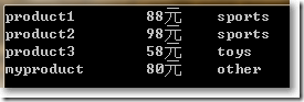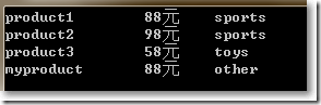 public class Product {public string Name { get; set; }public double Price { get; set; }public string Category { get; set; } }編寫如下: