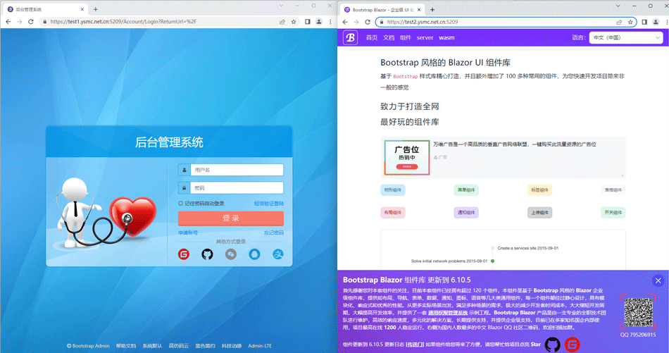 "ReverseProxy": { "Routes": { "admin": { "ClusterId": "admin", "Match": {"Hosts": [ "test1.ysmc.net.cn" ],"Path": "{**catch-all}" } }, "blazor": { "ClusterId": "blazor", "Match": {"Hosts": [ "test2.ysmc.net.cn" ],"Path": "{**catch-all}" } } }, "Clusters": { "admin": { "LoadBalancingPolicy": "RoundRobin", "Destinations": {"admin": { "Address": "https://admin.blazor.zone/"} } }, "blazor": { "LoadBalancingPolicy": "RoundRobin", "Destinations": {"blazor": { "Address": "https://www.blazor.zone/"} } } }}最終效果還是依舊的完美,感謝大佬的觀看,謝謝!