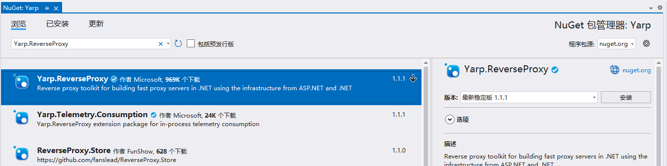 2、在NuGet包管理器中,安裝Yarp.ReverseProxy