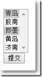 public class HomeController : Controller {public ActionResult Index(){ var cities = new List<City> {new City(){Id = 1, Name = "青島", IsSelected = true},new City(){Id = 2, Name = "膠南", IsSelected = false},new City(){Id = 3, Name = "即墨", IsSelected = true},new City(){Id = 4, Name = "黃島", IsSelected = false},new City(){Id = 5, Name = "濟南", IsSelected = false} }; var citiesToPass = from c in citiesselect new SelectListItem() {Text = c.Name, Value = c.Id.ToString(),Selected = c.IsSelected}; CityVm cityVm = new CityVm(); cityVm.Cities = citiesToPass; ViewData["cc"] = citiesToPass.Count(); return View(cityVm);}...... }在Home/Index.cshtml中,是一個CityVm的強類型視圖,對于選中的項會以IEnumerable<string>集合傳遞給控制器。