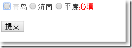 @model MvcApplication1.Models.Vm@{ ViewBag.Title = "Index"; Layout = "~/Views/Shared/_Layout.cshtml";}<style type="text/css"> .RadioButton { float:left; }</style>@using (Html.BeginForm("Index", "Home", FormMethod.Post, new {id = "addForm"})){ @Html.RadioButtonListFor(v => v.CityId, ViewData["c"] as IEnumerable<SelectListItem>) @Html.ValidationMessageFor(v => v.CityId) <input type="submit" value="提交"/>}以上就是這篇文章的全部內(nèi)容了,希望本文的內(nèi)容對大家的學習或者工作具有一定的參考學習價值,謝謝大家對的支持。如果你想了解更多相關(guān)內(nèi)容請查看下面相關(guān)鏈接