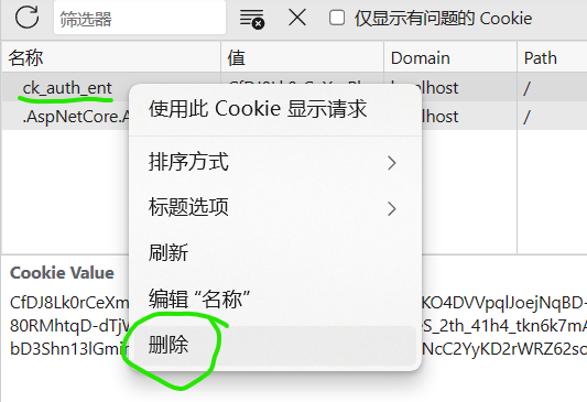 現在,把名為 ck_auth_ent 的Cookie刪除。