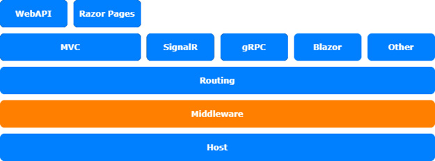 MvcMiddleware組件檢查請求的資源,將其映射到已配置的路由,執行控制器,創建視圖,并返回HTML或Web API結果。如果MvcMiddleware沒有找到匹配的控制器,它無論如何都會返回一個結果——通常是一個404狀態的結果,這就是為什么MvcMiddleware是最后配置的中間件。