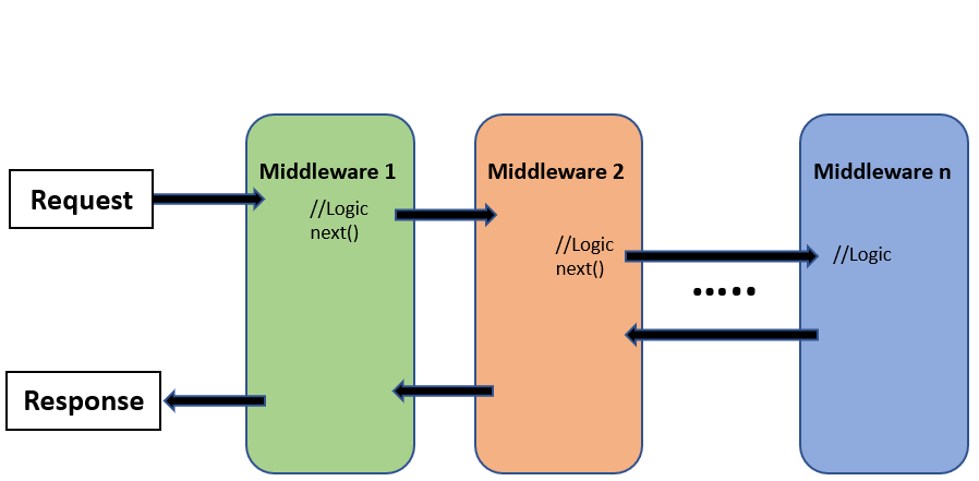中間件組件是處理請求管道的一段代碼。我們可以將請求流程想象成一串管道,每次請求調用,都會返回一個響應。中間件負責創建回聲——它操縱請求上下文,加工處理、疊加邏輯、豐富信息。
