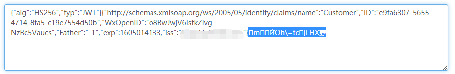 最后一部分是CCC代表的Signature,當然也是字面意思——簽名,base64解碼后,是這個樣子: