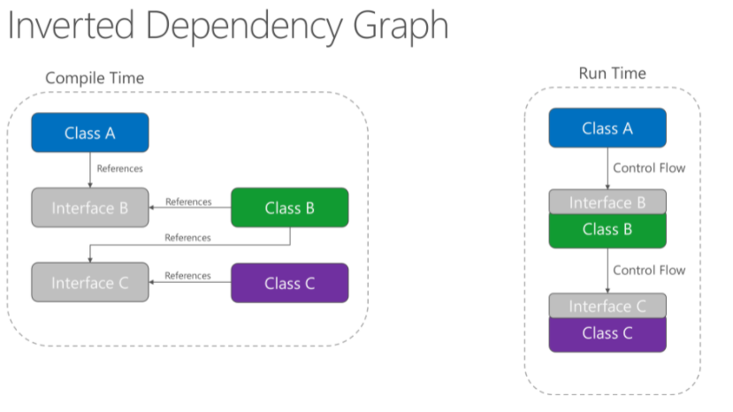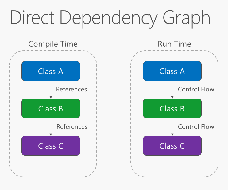 大部分應用程序都是這樣編寫的:編譯時依賴關系順著運行時執行的方向流動,從而生成一個直接依賴項關系圖。 也就是說,如果類 A 調用類 B 的方法,類 B 調用 C 類的方法,則在編譯時,類 A 將取決于類 B,而 B 類又取決于類 C