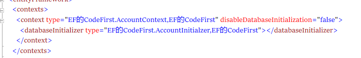 注意type里面配置的是程序集的名稱,而不是命名空間的名稱,還有就是disableDatabaseInitialization這個(gè)參數(shù),false是指明啟用這個(gè)配置,true這是禁用。