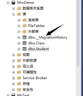 我們?cè)跈z查一下數(shù)據(jù)庫,win+r 輸入命令 ssms 打開數(shù)據(jù)庫發(fā)現(xiàn),數(shù)據(jù)庫也被正常創(chuàng)建了,這里說明一下,這里除了生成了我們需要的表以外,還生成了表“dbo__MigrationHistory”,這個(gè)表是記錄數(shù)據(jù)庫遷移使用的,以后再做說明,每次數(shù)據(jù)庫表結(jié)構(gòu)的更新,都會(huì)在這里存下數(shù)據(jù)。