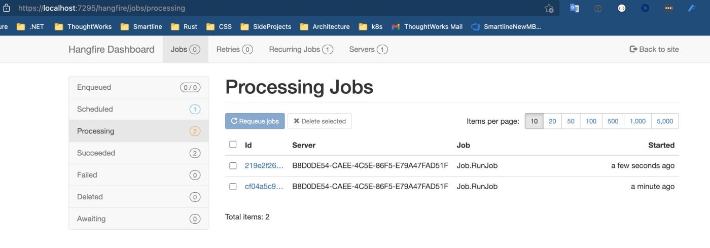namespace HelloHangfire;public interface IJob{ public Task<bool> RunJob();}Job.cs