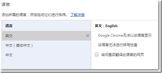在chrome瀏覽器語言設置中選擇英語。