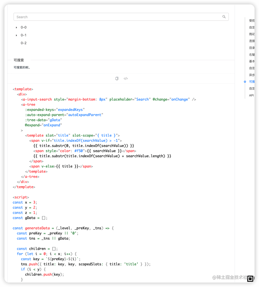 我使用的是 vue2 + antd, 那么 antd 的 tree 組件中沒有給我們封裝搜索,其官網(wǎng)提供的搜索也不是封裝好的,而且限制比較大,因?yàn)槲业臉湫芜M(jìn)來(lái)要默認(rèn)展開,官方的代碼是進(jìn)行了響應(yīng)式,就不能上來(lái)就全部展開了