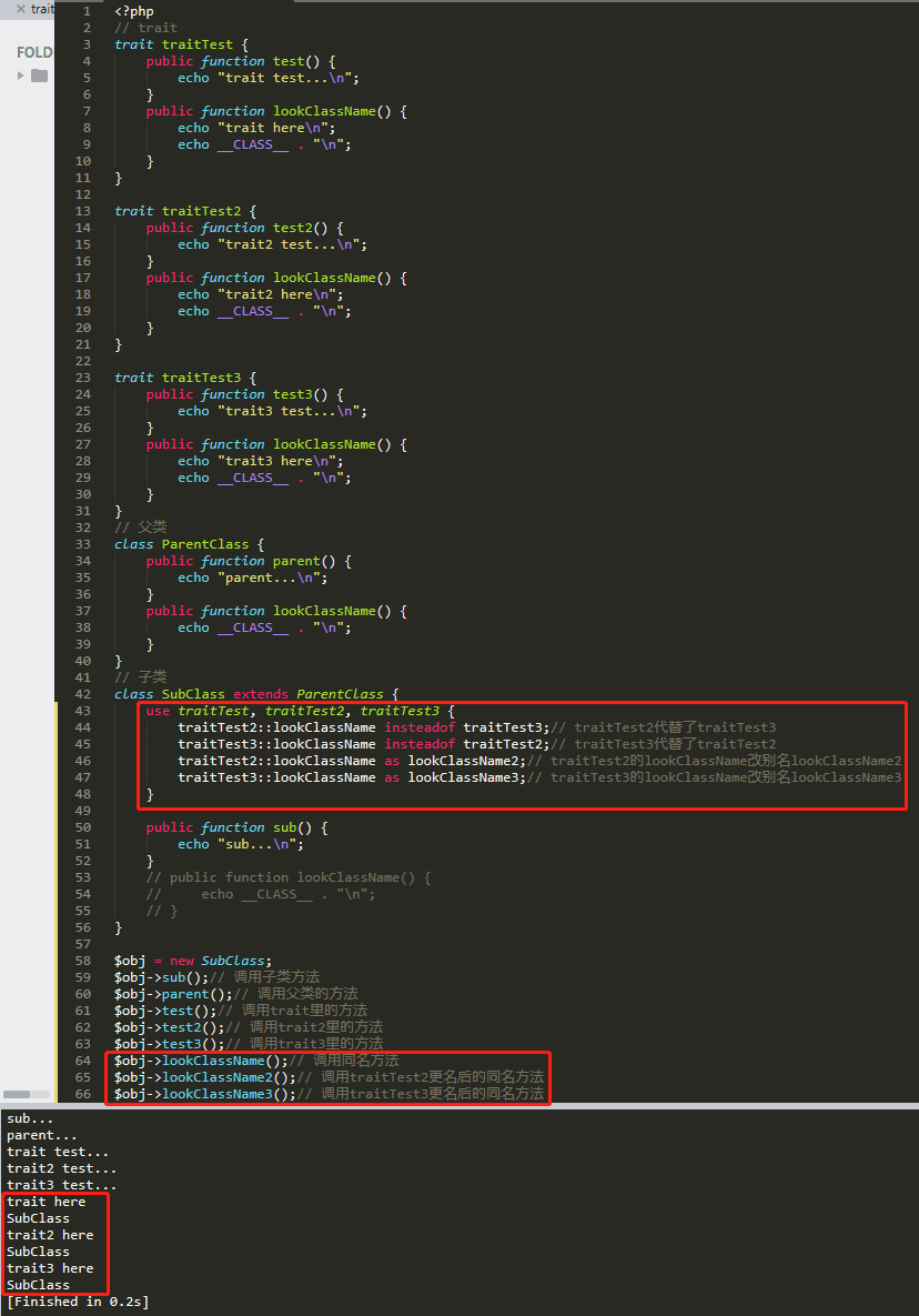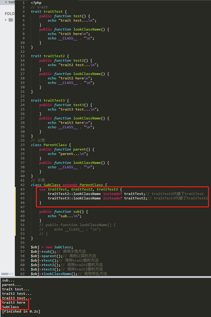 如圖,當(dāng)traitTest2和traitTest3互相代替后,直接輸出了traitTest的內(nèi)容。