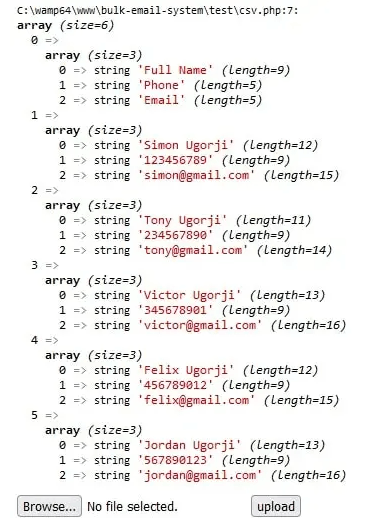 if($_FILES){ //loop through the csv file into an array $theCSV = array_map("str_getcsv", file($_FILES["file"]["tmp_name"], FILE_IGNORE_NEW_LINES | FILE_SKIP_EMPTY_LINES)); /*Walk through the array and combine the headers which is the first element of our csv array with the rest of the csv data*/ array_walk($theCSV, function(&$ary) use($theCSV) {$ary = array_combine($theCSV[0], $ary); }); //remove column headers which is the first element array_shift($theCSV); //dump result var_dump($theCSV);}這就是我們最終的 CSV 數組的樣子