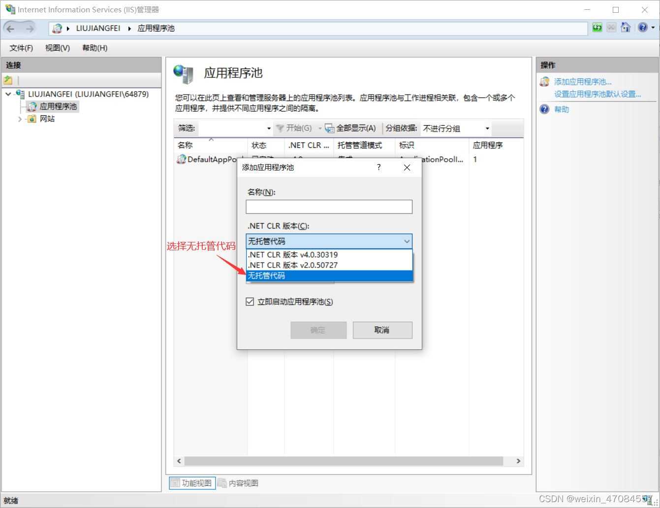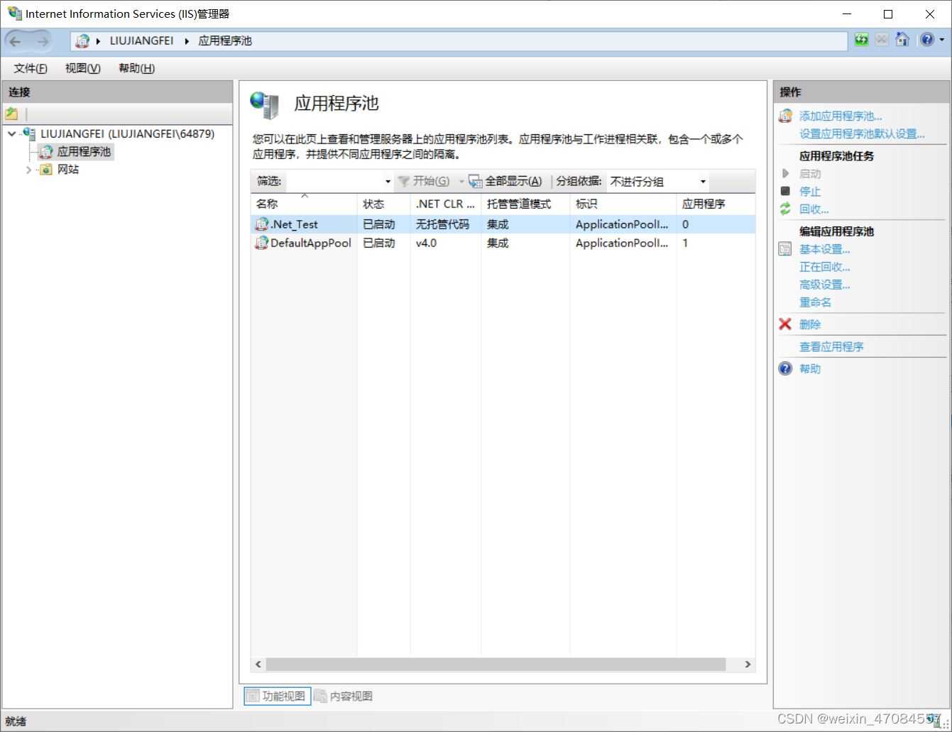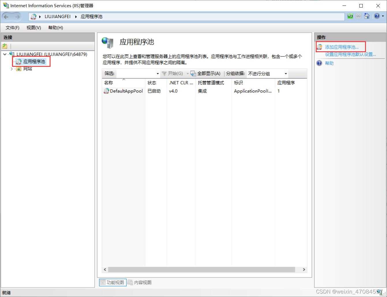 (1) 添加應用程序池