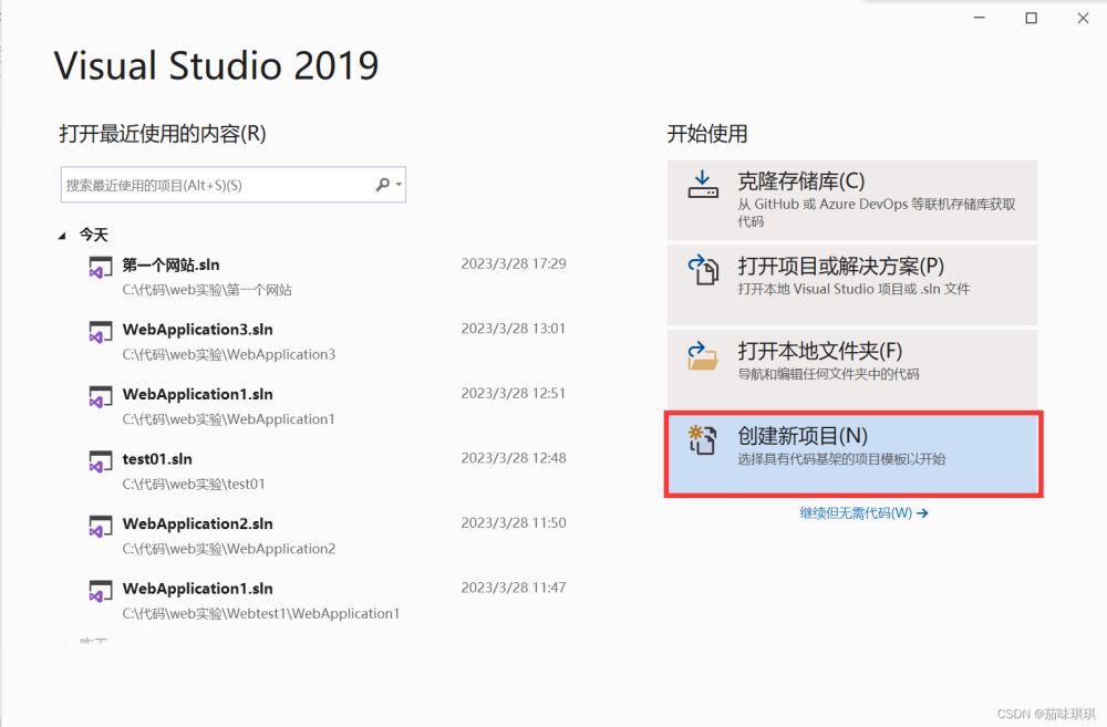 一、打開(kāi)VS2019選擇創(chuàng)建新項(xiàng)目