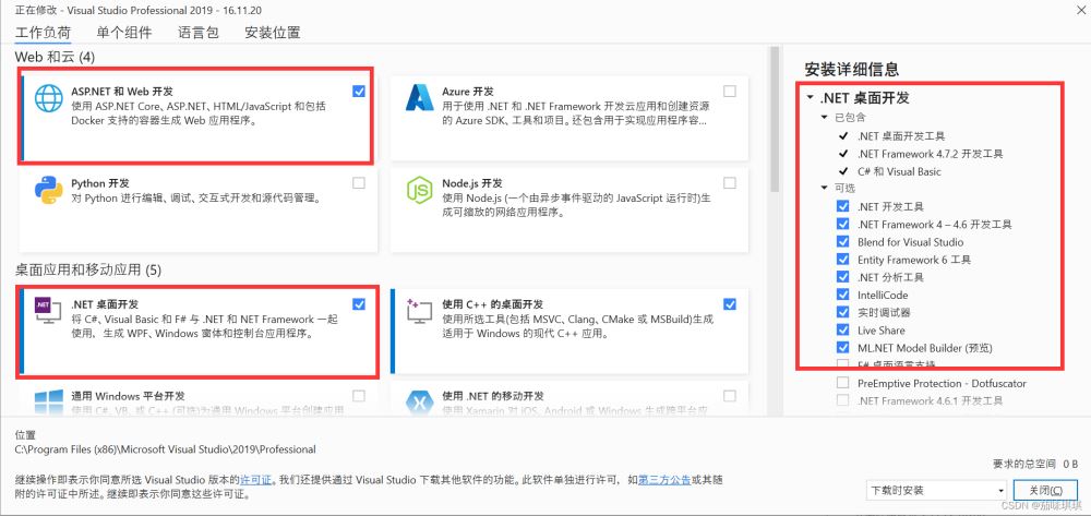 如果選擇創(chuàng)建新項(xiàng)目后打開(kāi)沒(méi)有以上選項(xiàng),則需要對(duì)VS2019的安裝進(jìn)行修改