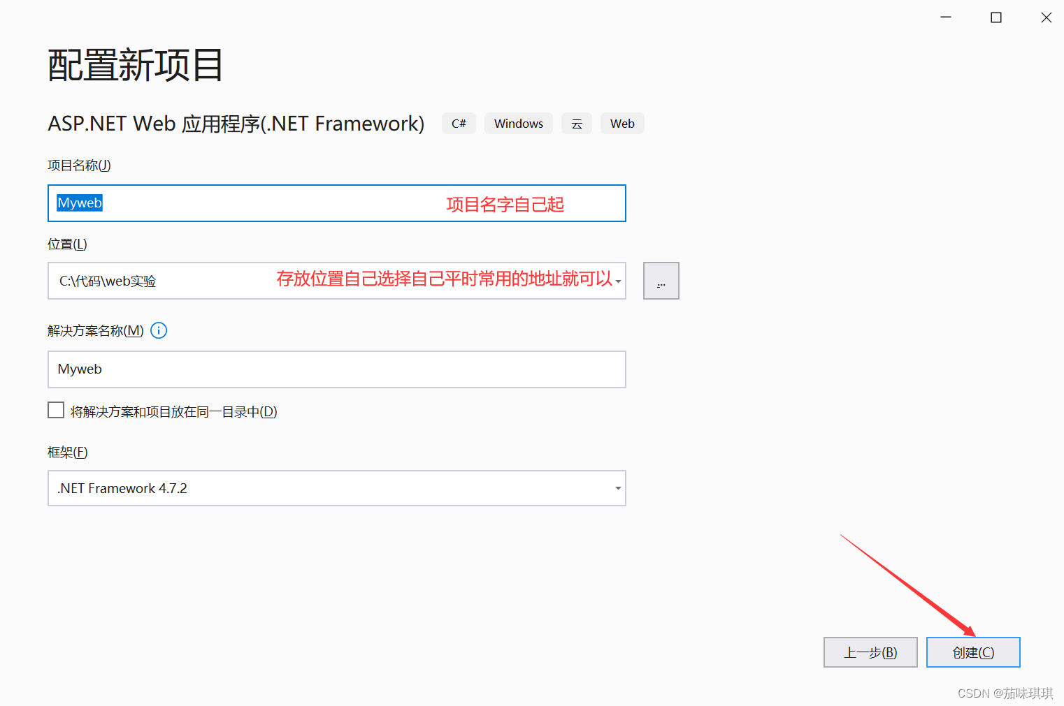 三、填寫(xiě)項(xiàng)目名字與存放位置后點(diǎn)擊創(chuàng)建項(xiàng)目