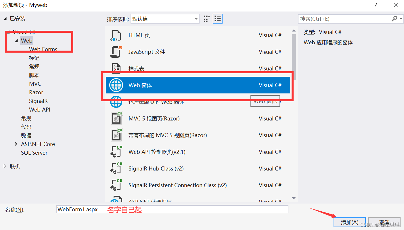 四、右鍵添加新項(xiàng)——Web窗體