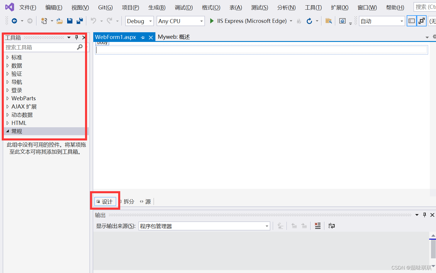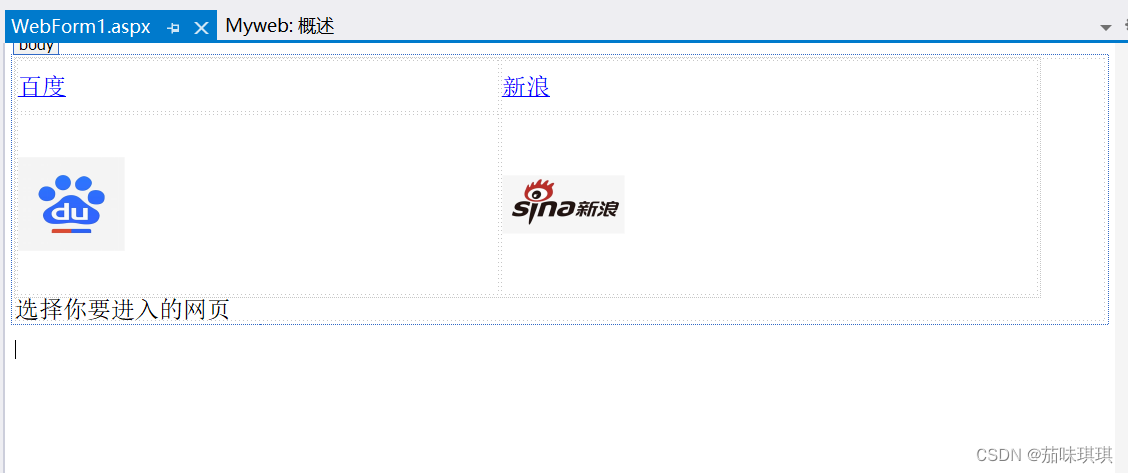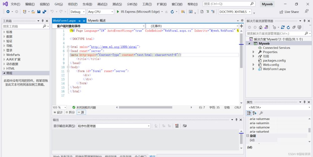 - 五、添加完Web窗體后界面如下,則可以利用html或者css的標(biāo)簽來(lái)設(shè)計(jì)自己所要展示的網(wǎng)頁(yè)
