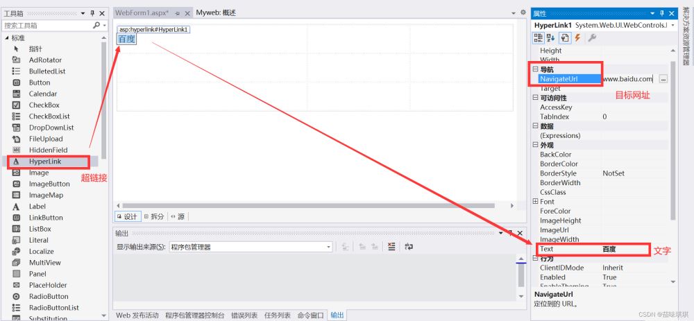 如在頁(yè)面添加Table控件(在HTML那一欄)還有超鏈接控件(標(biāo)準(zhǔn))與圖片控件,并且設(shè)置對(duì)應(yīng)的文字與鏈接